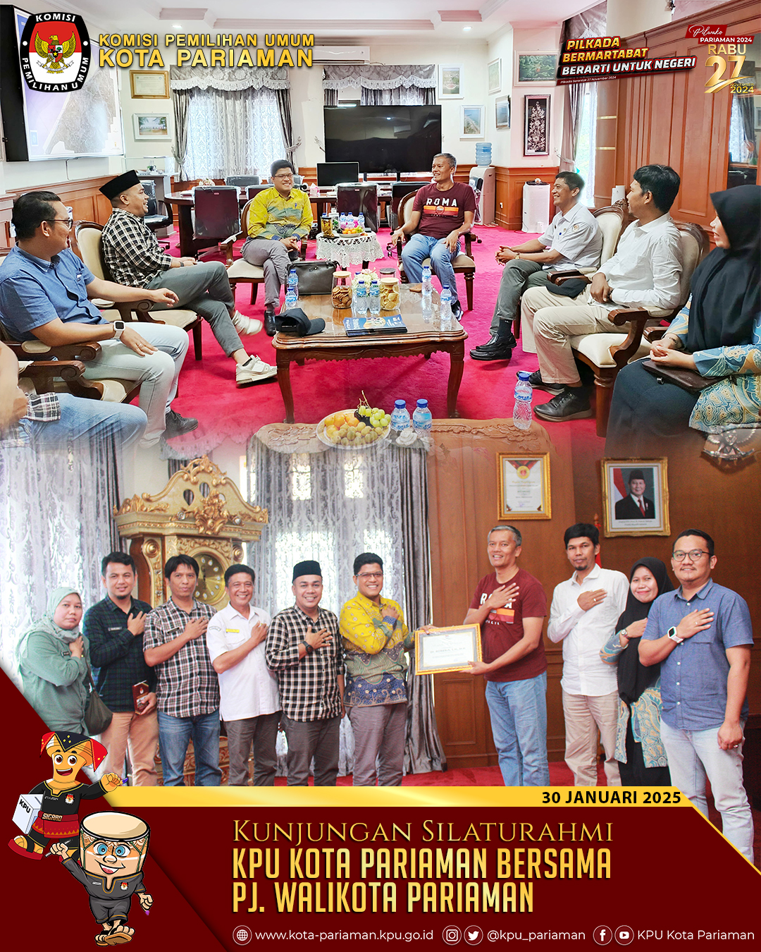 Pariaman, 30 Januari 2025 – Dalam upaya mempererat sinergi antarlembaga serta mengapresiasi peran penting Pemerintah Kota Pariaman dalam mendukung suksesnya Pemilu dan Pilkada Serentak 2024, Komisi Pemilihan Umum (KPU) Kota Pariaman menggelar kunjungan silaturahmi ke Penjabat Wali Kota Pariaman, Bapak Roberia.