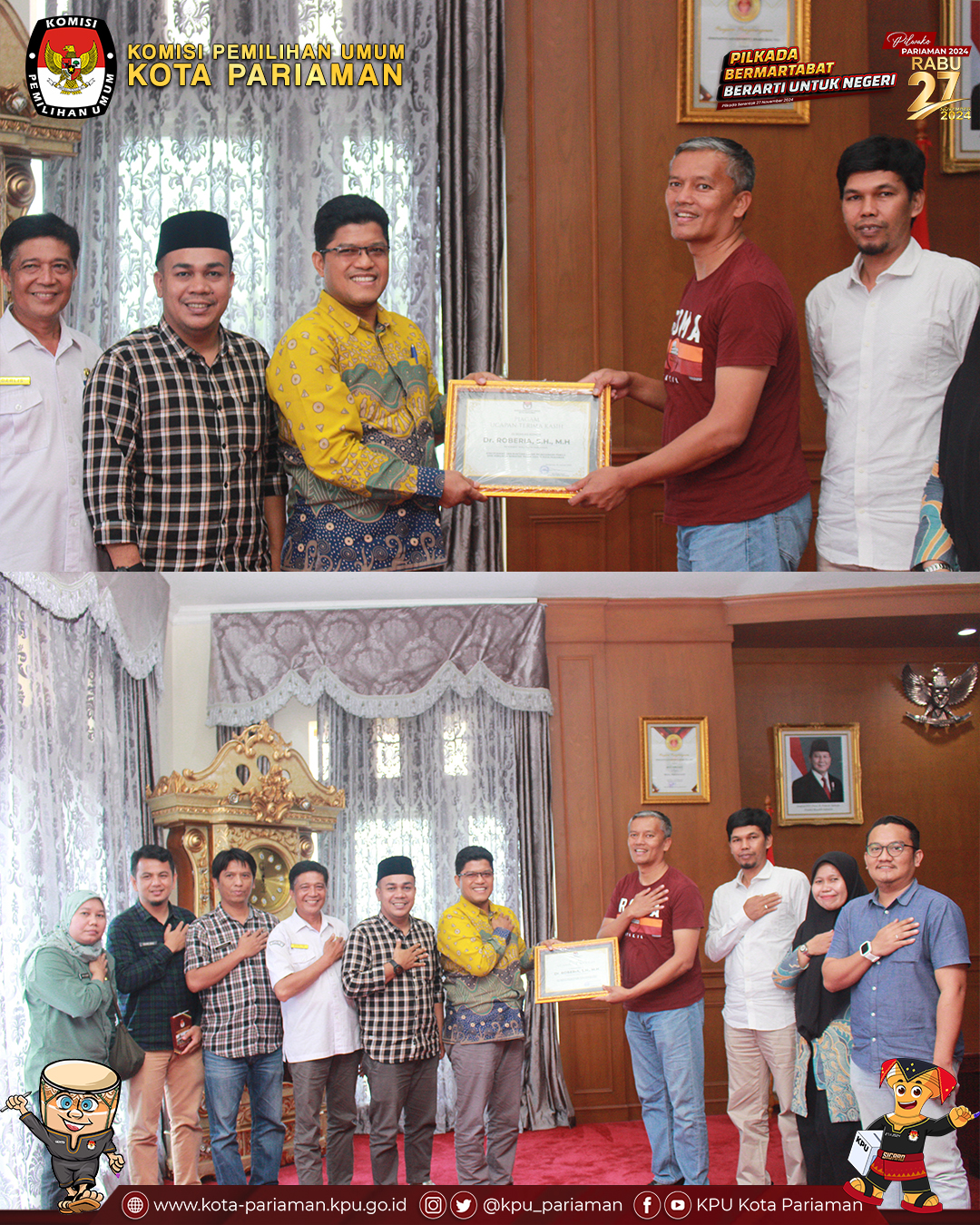 Sebagai bentuk penghormatan dan penghargaan atas dedikasi beliau dalam memimpin Kota Pariaman, khususnya dalam mendukung proses demokrasi di daerah ini, KPU Kota Pariaman menyerahkan Piagam Penghargaan kepada Bapak Roberia. Penghargaan ini menjadi bukti nyata apresiasi atas kerja sama yang telah terjalin, sekaligus sebagai ungkapan terima kasih atas kontribusi besar beliau dalam menjaga kondusivitas dan kelancaran pesta demokrasi di Kota Pariaman.