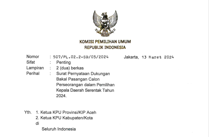 Komisi Pemilihan Umum Kota Pariaman mengundang Warga Negara Indonesia yang memenuhi persyaratan untuk mendaftarkan diri menjadi Calon Anggota Panitia Pemilihan Kecamatan (PPK) untuk Pemilihan Gubernur dan Wakil Gubernur Sumatera Barat serta Walikota dan Wakil Walikota Pariaman Tahun 2024.