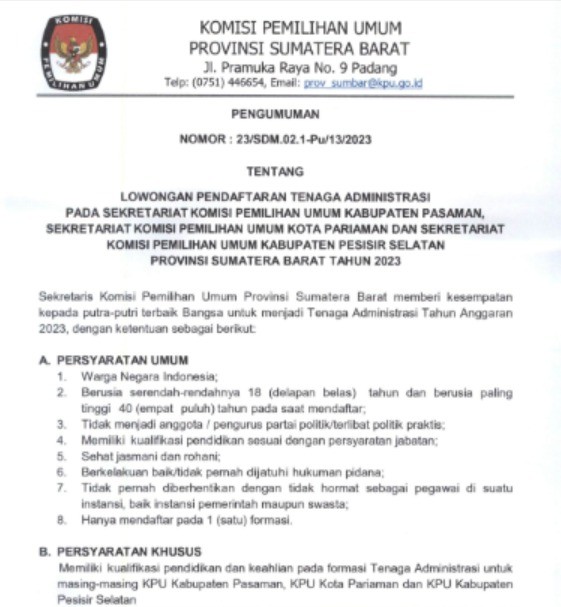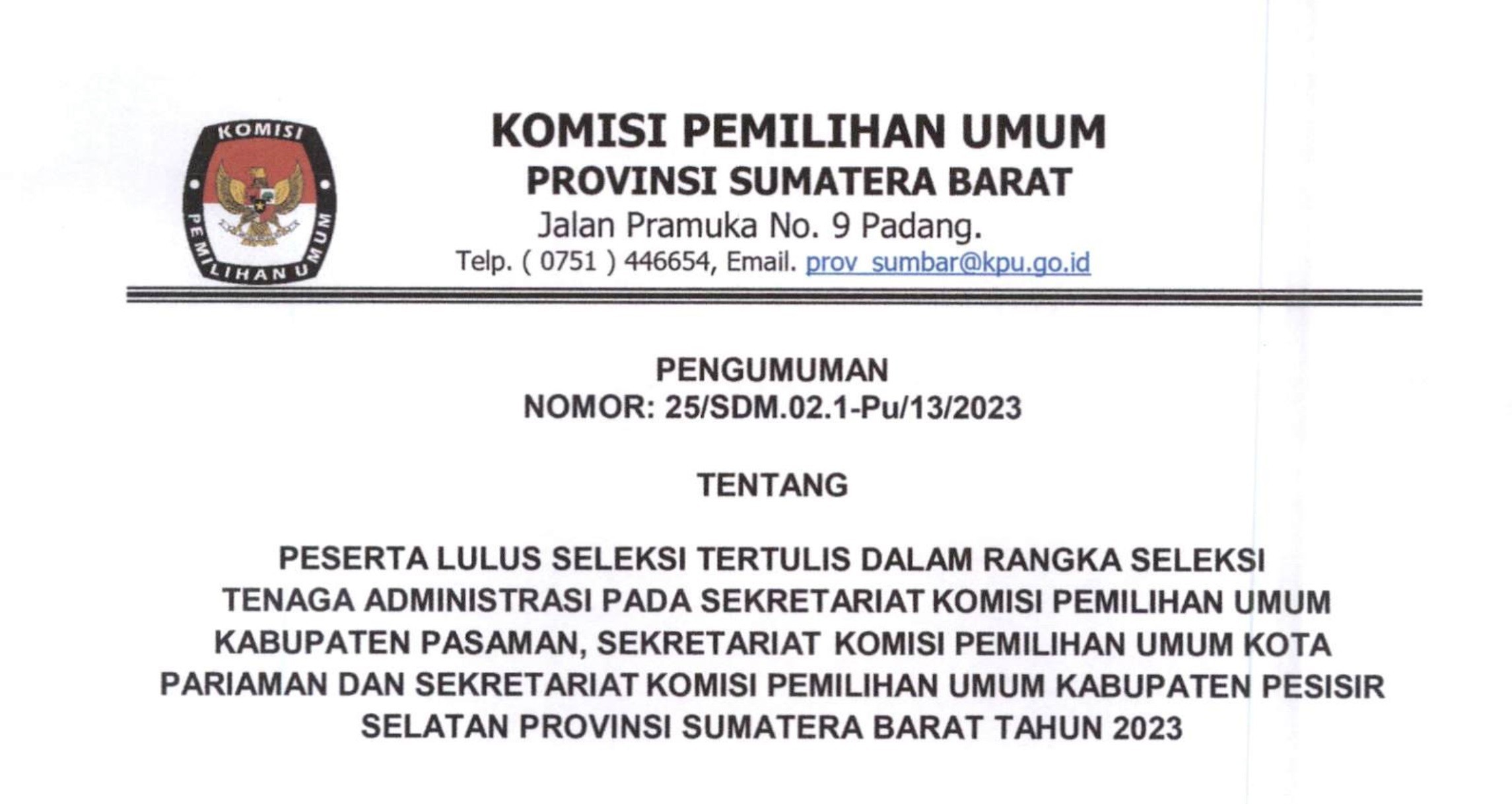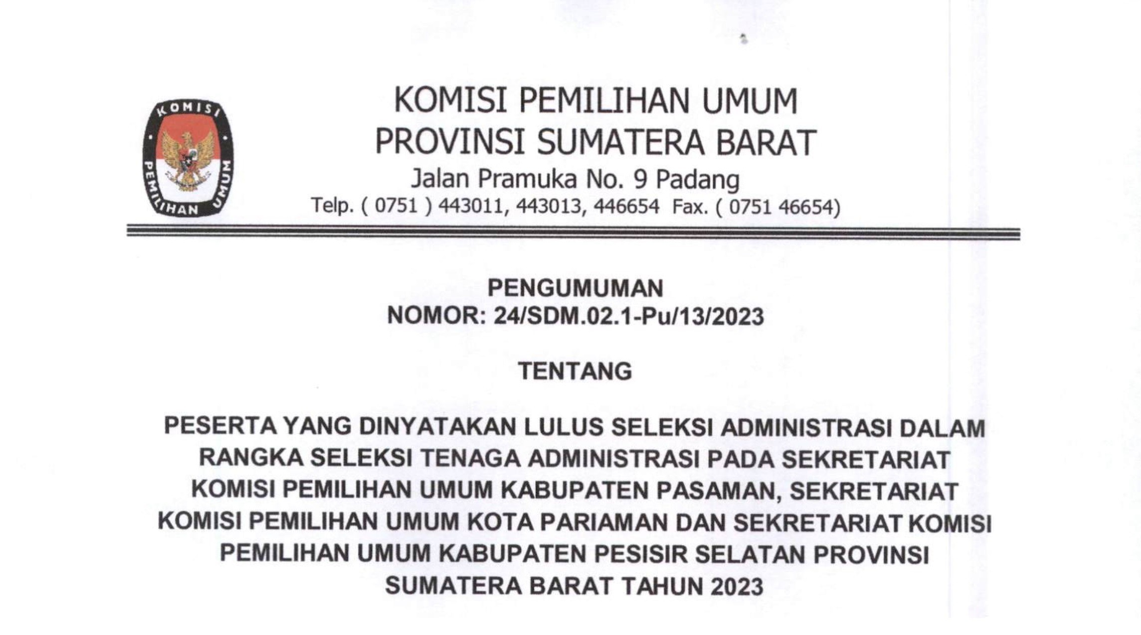 Pariaman, kota-pariaman.kpu.go.id - Berikut ini kami umumkan Ralat Daftar Calon Sementara (DCS) Anggota DPRD Kota Pariaman dalam Pemilihan Umum Tahun 2024 Pasca Putusan Bawaslu Kota Pariaman.