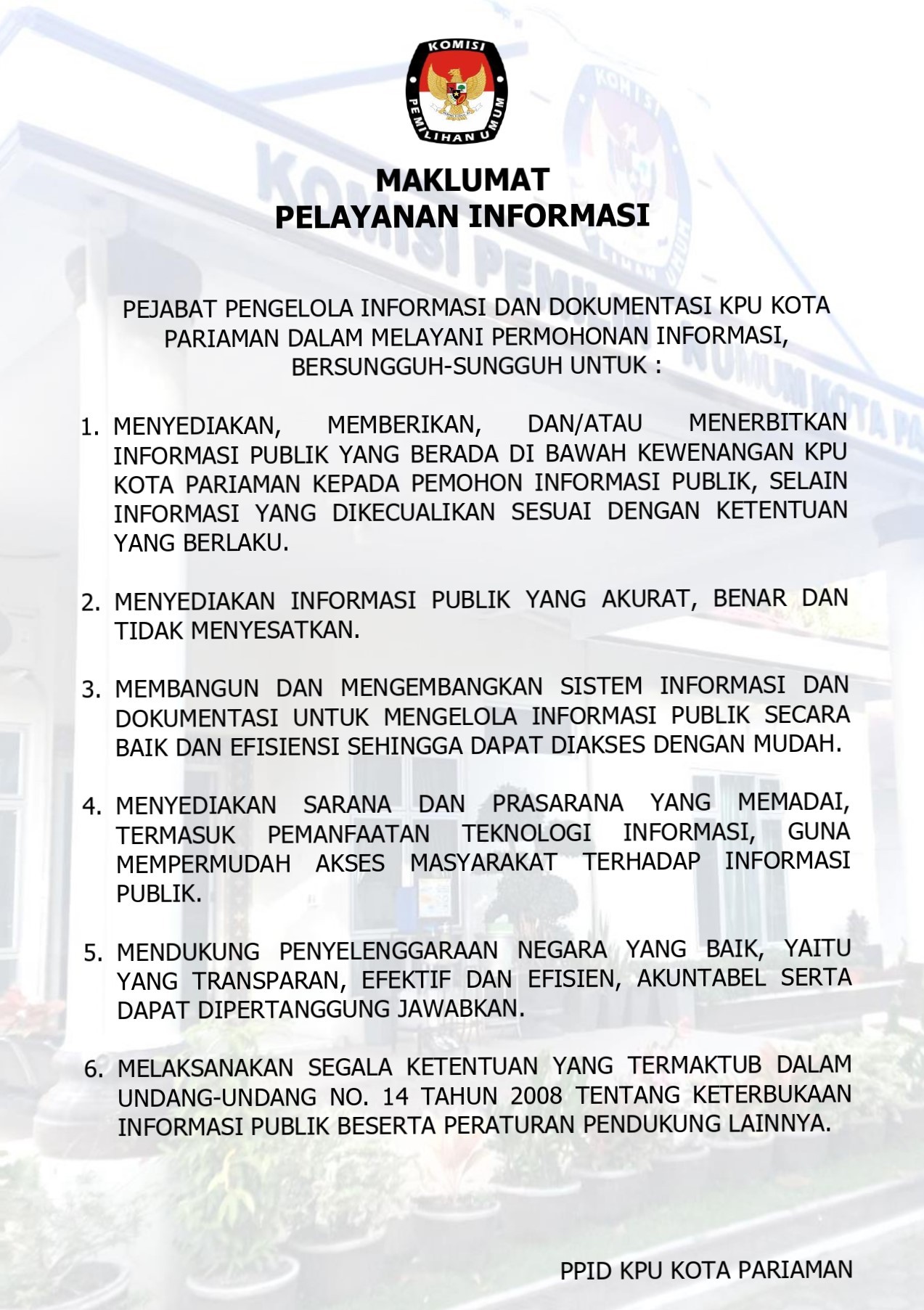 MAKLUMAT PELAYANAN INFORMASI KPU KOTA PARIAMAN
