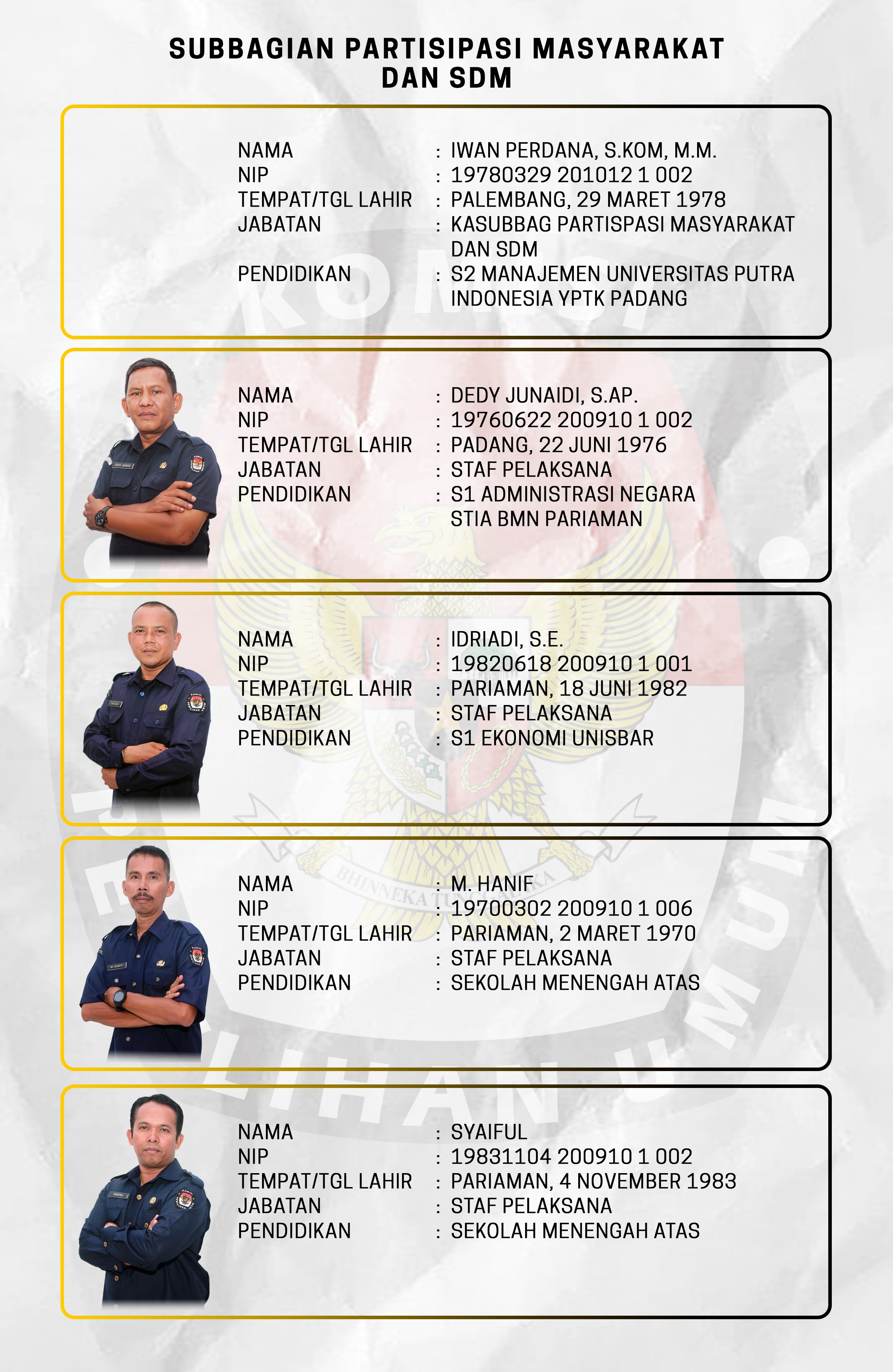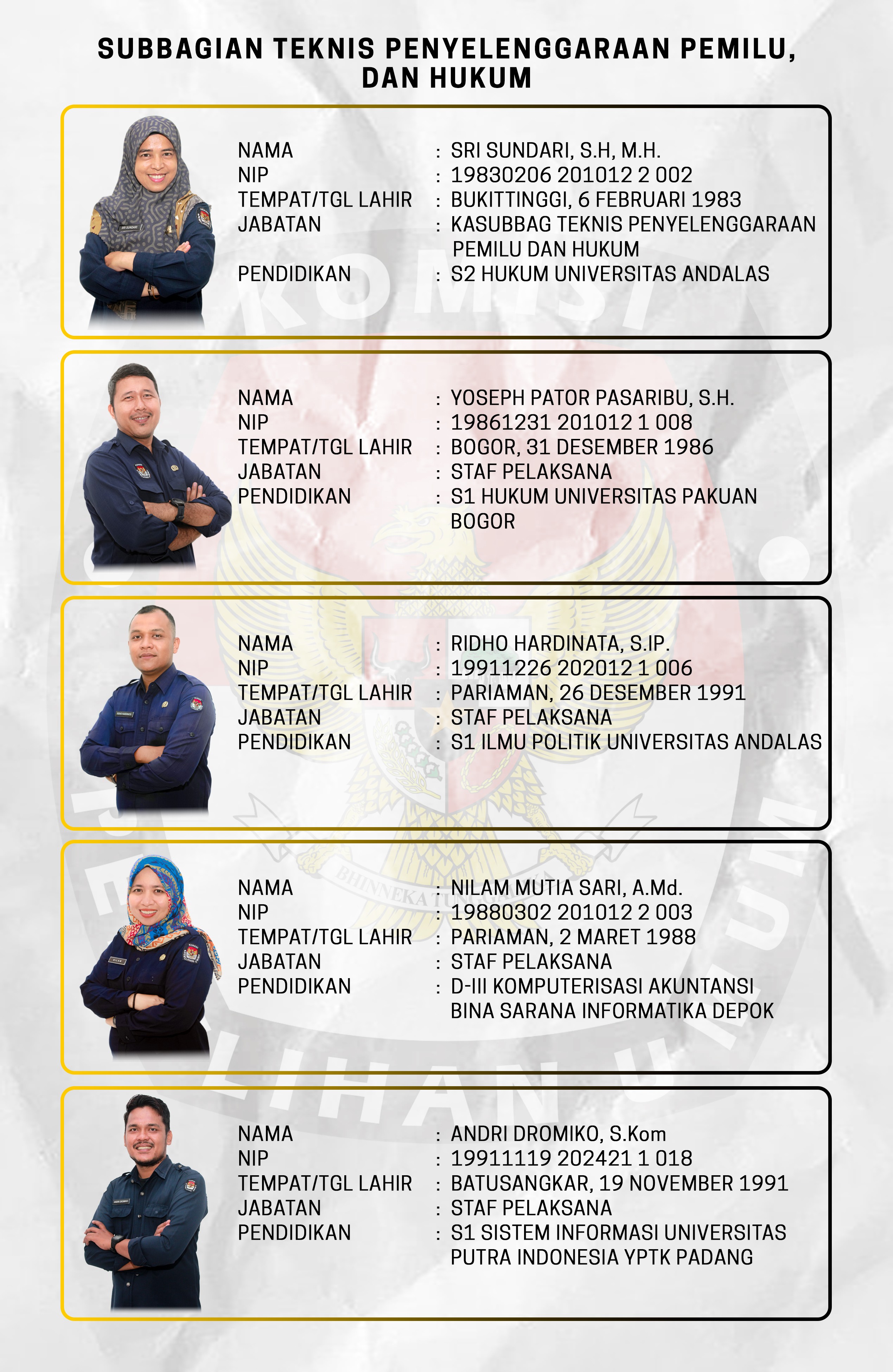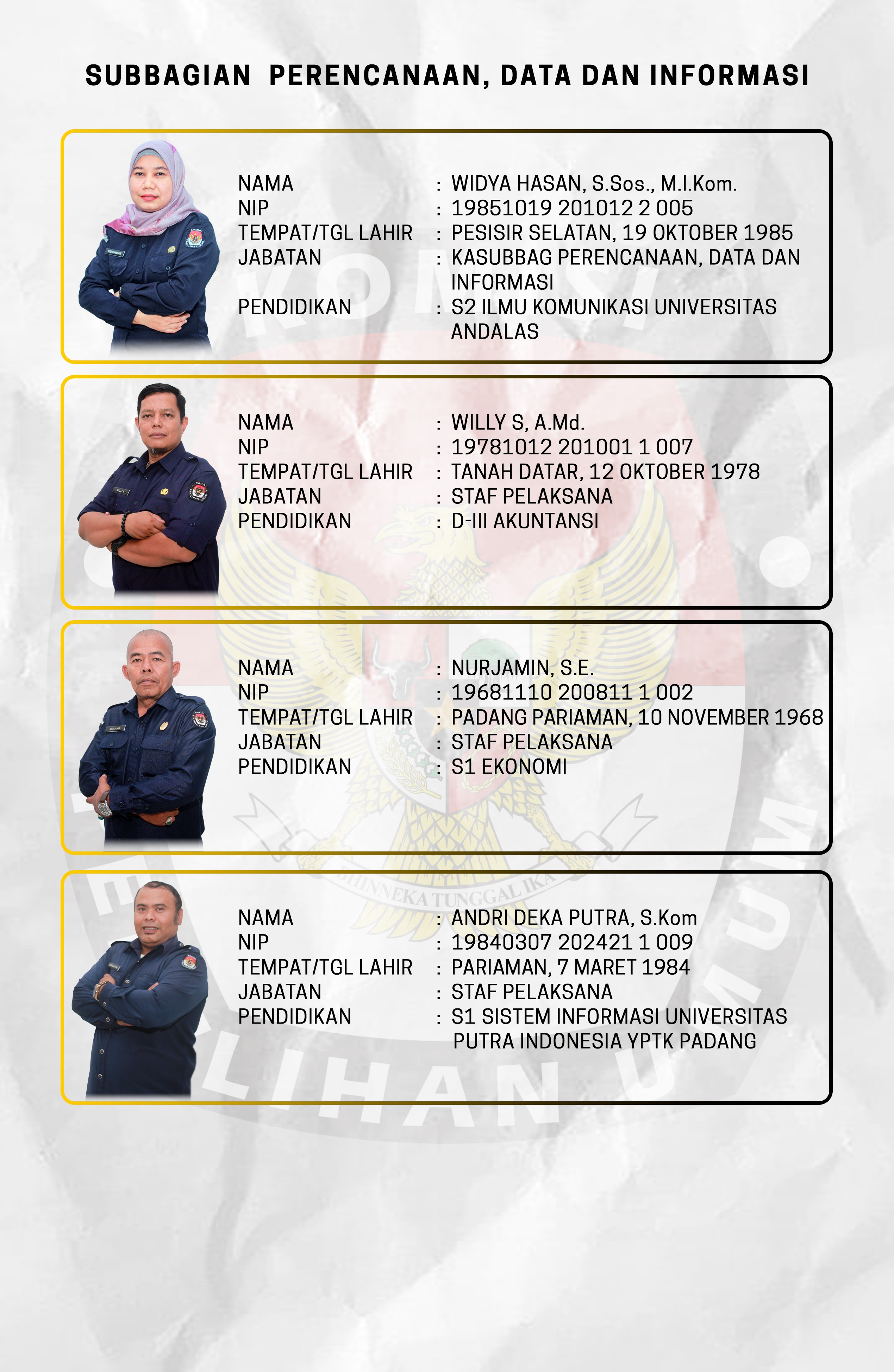 PROFIL SEKRETARIAT KPU KOTA PARIAMAN 1. SEKRETARIS 2. SUBBAGIAN KEUANGAN, UMUM DAN LOGISTIK 3. SUBBAGIAN PERENCANAAN, DATA DAN INFORMASI 4. SUBBAGIAN TEKNIS PENYELENGGARAAN PEMILU DAN HUKUM 5. SUBBAGIAN PARTISIPASI MASYARAKAT DAN SDM 6. FUNGSIONAL Share this artikel : Dilihat 202 Kali.